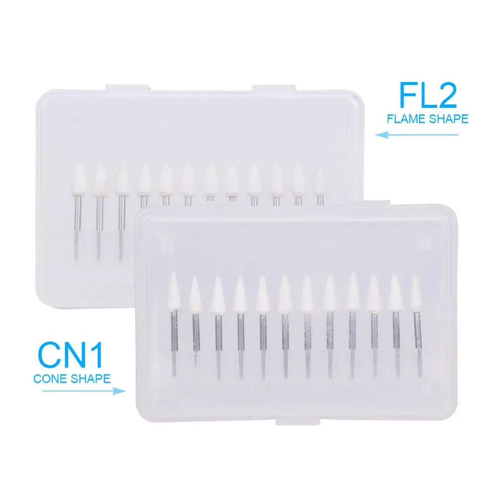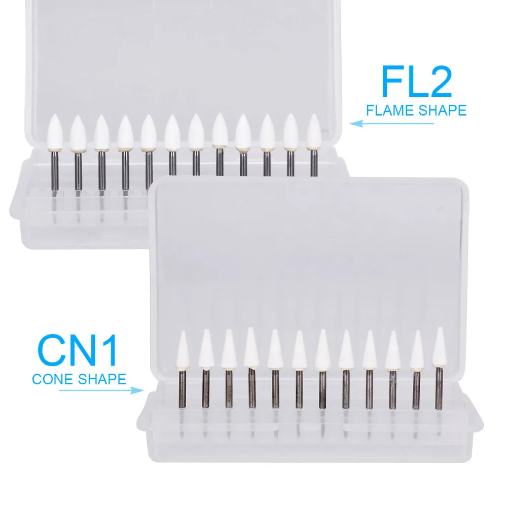 24Pcs Dental Flame And Cone White Stone Polishing FG Burs FL2 Abrasion Point Bur Fit High Speed Handpiece 1.6mm Dentist Tools