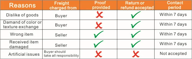 4. We will bear all the shipping cost if the product(s) is (are) not as advertised.