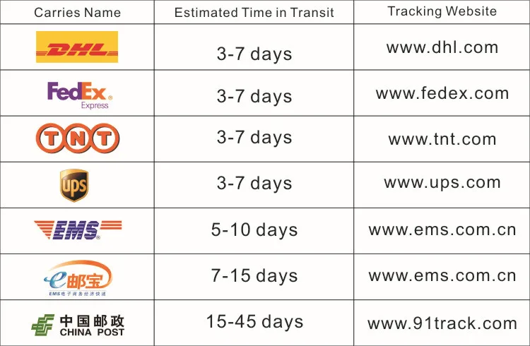 However, if you want more fast shipping you can pay the items by EMS, UPS/FEDEX and JILLION Courier.