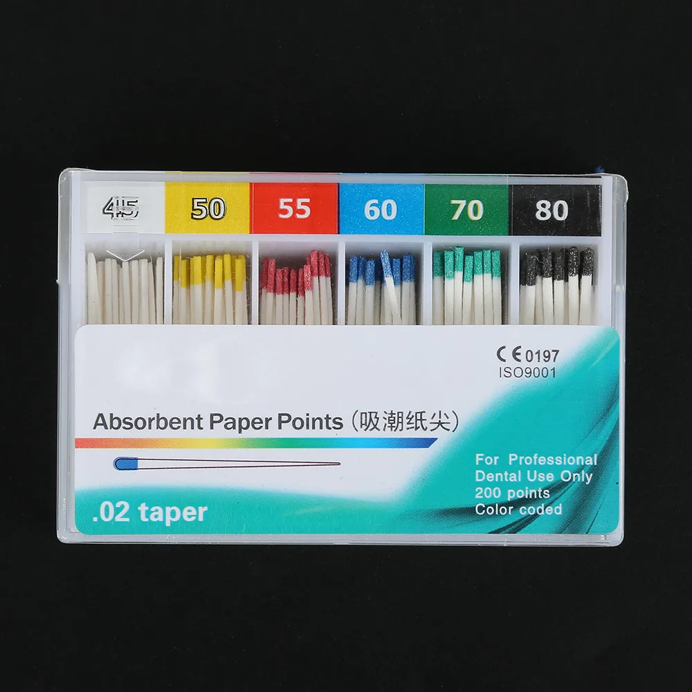 Tip colors of paper point can avoid confusion of various types. Paper point with scale is convenient for detecting depth