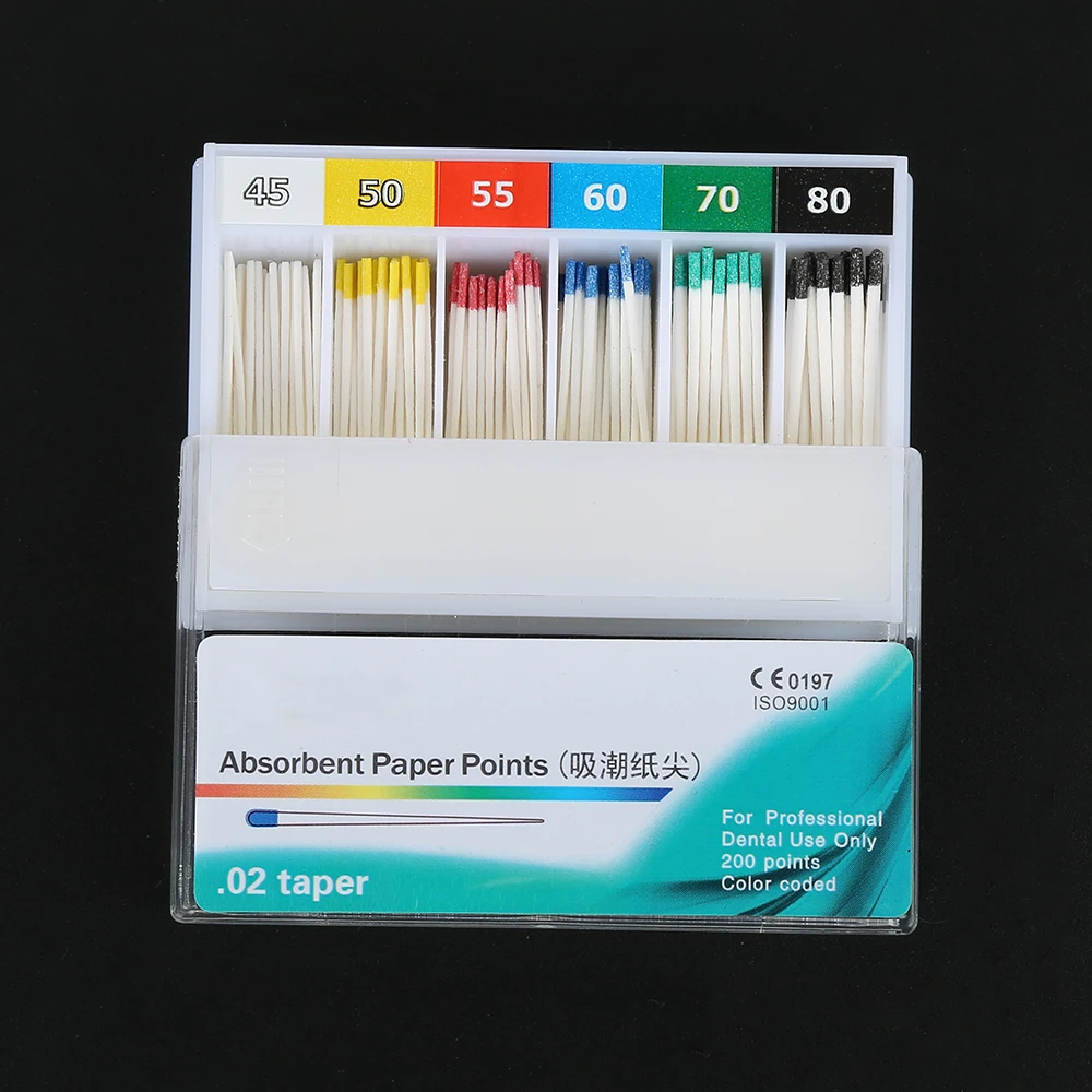 Y&W&F 200pcs/pack Dental Absorbent Paper Points Root Cancel Endodontics Cotton Fiber Tips Dentist Product Mixed Sizes#15-40 45-8